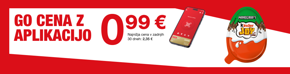 Med 1. 4. in 30. 4. 2026 lahko Kinder Joy kupite za samo 0,99 €! Akcijska cena velja izključno za Hitre nakupe ali naročila vnaprej z »Naroči in prevzemi« preko aplikacije Petrol GO.